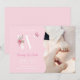 Faire-part bébé rose mignon avec lettre W initiale en blanc et rose. La première est décorée de fleurs dessinées à la main et de papillon. Cette faire-part de naissance simple et élégante est parfaite pour annoncer l'arrivée de votre petite princesse.