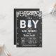 Faire-part de naissance garçon hiver pingouin rustique. Flocon de neige blanc. Bébé, il fait froid dehors Faire-part de naissance. Faire-part de naissance garçon. Invitation à une fête prénatale d'hiver. Fond tableau noir. Noir et blanc. Pour une personnalisation plus poussée, veuillez cliquer sur le bouton "Personnaliser" et utiliser notre outil de conception pour modifier ce modèle.