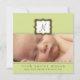 Cette faire-part de naissance moderne présente l'intérieur initial du bébé à l'intérieur d'un cadre avec une pièce sous la photo pour les détails de naissance. Placez-vous sur un arrière - plan vert.
