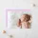 Ce faire-part de naissance est composé d'un texte simple avec une orientation latérale. Le dos offre un arrière - plan lilas modifiable avec place pour une autre photo.