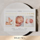 Les annonces de naissance modernes et élégantes comportent trois photos de nouveau-nés alignées côte à côte et parées de feuille d'or, avec le nom du bébé sur le dessus en papier doré. Personnalisez avec les statistiques de naissance du bébé sous.