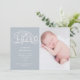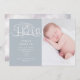 Faire-part rustique décoratif "bonjour" avec des fioritures et une illustration de pochoir papillon associée au nom et à la date dans une élégante police serif. Très facile à personnaliser avec vos informations et votre photo pour une annonce rustique élégante, et vous pouvez changer la couleur de l'arrière-plan au-delà des choix existants de blush poussiéreux et de bleu bébé.
