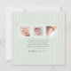 Partagez vos nouvelles avec cette annonce de naissance moderne et intemporelle. Avec un monogramme épuré et un fond à rayures fines délicates, cette carte minimaliste met en valeur la photo de votre nouveau-né. Le verso polyvalent comprend un espace pour plusieurs photos et un doux message, ce qui en fait l'idéal pour une utilisation à la fois comme annonce de naissance et comme carte de remerciement pour une baby shower. Disponible en plusieurs coloris pour s'adapter parfaitement au style de votre petit bout.