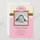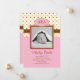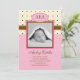 Faire-part de naissance personnalisé moderne pour une fille. Ajoutez votre propre photo et vos propres mots. Comporte les initiales du bébé en monogramme et un fond à pois mignon en rose et marron. Élégant mais ludique.