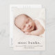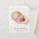Un faire-part de naissance photo économique et charmant avec un nom moderne et une photo verticale en plein cadre. Au dos, il y a un emplacement pour une autre photo, un grand en-tête avec le nom complet et un message personnel de la famille.