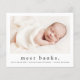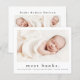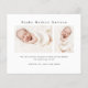 Un doux faire-part de naissance photo présentant une photo horizontale de nom moderne sur le devant. Le dos comporte 2 photos supplémentaires avec un grand en-tête de nom complet et un message personnel de la famille. Cliquez sur le bouton modifier pour personnaliser ce design avec vos photos et détails.