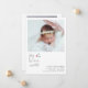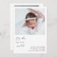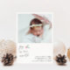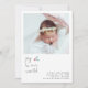 Carte de faire-part de naissance élégante et moderne sur le thème de Noël avec un texte manuscrit qui dit "joie à notre monde" et une petite illustration de gui. C'est une carte de faire-part de naissance pour les fêtes de fin d'année ! Ajoutez vos photos, les détails de naissance et un message ! Le fond est blanc.