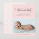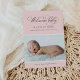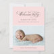 Annoncez l'arrivée de votre bébé fille avec ce faire-part de naissance photo élégant "Bienvenue bébé". Un script de calligraphie fluide de couleur gris chaud est placé au-dessus d'une bande rose affichant le nom de votre nouveau-né, sa date de naissance, son poids et sa taille. Votre photo préférée est mise en valeur ci-dessous avec un message des parents fiers. Le dos présente un motif damas rose pâle coordonné. Tous les textes et les couleurs de fond sont entièrement personnalisables.