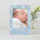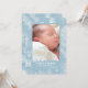 Faire-part de naissance saisonnier avec un fond bleu clair et des branches de pin hivernales et des pommes de pin. (<a href="https://www.freepik.com/free-photos-vectors/background">Vecteur de fond créé par rawpixel.com - www.freepik.com</a>). PIX. <br/><br/>La carte est facile à personnaliser avec votre texte, police, couleur de police, options de forme de papier et choix parmi six types de papier.<br/><br/>Pas exactement ce que vous cherchez ? Tous nos produits peuvent être conçus sur mesure pour répondre à vos besoins sans frais supplémentaires.<br/><br/>Contactez-nous simplement à askcottonlamb@gmail.com.<br/><br/>Produits coordonnés disponibles : il suffit de nous demander !