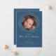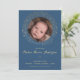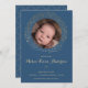 Cette belle et tendance faire-part de naissance photo est ornée d'une illustration de couronne dorée fleurie avec le mot "béni" encerclant une image. La photo et le texte (mots et couleur) peuvent être customisés pour annoncer l'arrivée de votre nouveau bébé. La couleur arrière - plan sur le dos (en bleu marine) peut également être changée à votre goût.