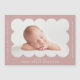 Un aimant faire-part de naissance simple et moderne avec la photo de votre bébé nichée à l'intérieur d'un cadre rose à pétoncles poussiéreux. Personnalisez l'aimant faire-part de naissance en ajoutant le nom de votre bébé et des informations supplémentaires en lettres blanches.
