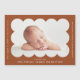 Un aimant faire-part de naissance simple et moderne avec la photo de votre bébé nichée à l'intérieur d'un cadre en terre cuite à échafaudage. Personnalisez l'aimant faire-part de naissance en ajoutant le nom de votre bébé et des informations supplémentaires en lettres blanches.