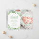 Cartes photos bébé imprimés sur mesure et abordables. Ce design sucré présente une bordure de branche d'aquarelle boho dans les tons vert et menthe. Personnalisez-le avec votre photo et le nom et les statistiques de naissance de votre bébé ou tout autre texte personnalisé. Reverse side dispose d'espace pour ajouter des photos et du texte supplémentaires. Utilisez les outils de conception pour choisir n'importe quelle couleur arrière - plan, modifier les polices de texte et les couleurs, ajouter plus de photos et créer un unique d'un faire-part de naissance bébé gentil pour votre nouvelle petite fille.