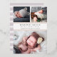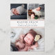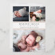 Annoncez l'arrivée de votre bébé avec nos annonces de naissance de collage photo avec des lettres grises élégantes et des garnitures roses en feuille d'or. Les cartes plates comportent trois de vos photos préférées de nouveau-nés — deux en haut, et une en bas — avec le nom du bébé, les statistiques de naissance et les noms de famille en gris chic.