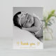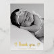 Carte Faire-part de naissance moderne avec un design simple avec "merci" dans un épais script d'écriture, ainsi que deux coeurs et le nom de votre bébé en feuille d'or réel sur votre photo verticale préférée. Le dos a un collage photo de trois images et votre message personnalisé en noir sur un arrière - plan blanc. Cette mignonne carte de naissance n'a pas de sexe, donc c'est super que vous annonciez la naissance de votre nouveau-né garçon ou fille.