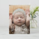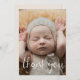 Envoyer un merci spécial à la famille et aux amis avec ce carte photo faire-part de naissance Le design simple comprend une photo sur le devant avec du Merci dans une typographie de script Le côté arrière comprend tous les détails importants y compris le nom du bébé, la date de naissance, les statistiques de naissance et un message de remerciement des parents.