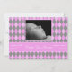 L'adorable Faire-part de naissance photo en Jacquard rose bébé de 5 x 7 cm est parfait pour envoyer à vos amis et votre famille pour annoncer l'arrivée de votre nouveau paquet de joie ! Ils sont accompagnés d'enveloppes blanches standard !