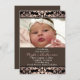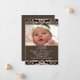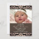 Cette Faire-part de naissance élégante personnalisable présente un motif damassé rose et noir sur un arrière - plan marron. Customisez-le en ajoutant photo & détails dans la police de votre choix !