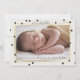 Un faire-part de naissance photo moderne avec un arrière - plan neutre clair-tan, des à petits pois éparpillés et deux mince cadre doré.<a href="https://www.freepik.com/free-photos-vectors/baby">Photo de bébé créée par freepik - www.freepik.com</a>).<a href="https://www.freepik.com/free-photos-vectors/background">vecteur Arrière - plan créé par rawpixel.com - www.freepik.com</a>). La carte est facile à customiser avec votre libellé, police, couleur de police et choix de six types de papier.<br/>() Pas exactement ce que vous cherchez? Tous nos produits peuvent être conçus sur mesure pour répondre à vos besoins sans frais supplémentaires.<br/>() Contactez-nous simplement à l'adresse askcottonlamb@gmail.com<br/>() Coordonner les produits disponibles :