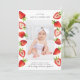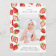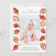 Carte faire-part de naissance mignonne avec une photo verticale de votre nouveau-né avec l'aquarelle illustration de fraises.