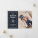 Cartes photos bébé imprimés sur mesure et abordables. Ce design branché présente une typographie moderne personnalisée avec le nom du bébé et les statistiques de naissance. Sur le côté arrière, vous pouvez imprimer une bande d'aquarelle gris et blanc chic ou utiliser l'espace pour ajouter des photos et du texte si nécessaire. Utilisez les outils de conception pour choisir n'importe quelle couleur arrière - plan, customiser des polices de texte et des couleurs pour créer un faire-part de naissance unique pour bébé pour votre nouveau-né.