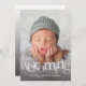 Ce design faire-part de naissance présente la photo de votre bébé au centre de la scène avec une superposition de texte transparent "accueillant". Cliquez sur le bouton personnaliser pour plus de flexibilité dans l'ajout de texte et de photos ! Des variantes de cette conception ainsi que des produits de coordination sont disponibles dans notre boutique, zazzle.com/store/doodlelulu. Contactez-nous si vous avez besoin que cette conception s'applique à un produit spécifique pour créer votre propre article de correspondance unique! Merci tellement pour voir un DoodleLulu par 2 june conception de bogues!