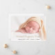 Cette carte à plat tout simplement charmante de faire-part de naissance photo présente un design contemporain qui est facilement customisé avec la photo de votre bébé, les détails et votre message. Nous avons choisi les coins arrondis comme paramètre de forme par défaut, mais vous pouvez facilement changer l'aspect en coins tranchants, car cet aspect fonctionne aussi merveilleusement avec cette conception. Essayez les deux formes en mode édition et voyez qui vous attrape! En plus du format photo complet, nous avons mis le nom de votre bébé au centre de l'attention, présenté dans un script moderne qui est à la fois ordonné et lisible mais aussi expressif, chaleureux et familier. Le script de nom est un élégant ton or appelé California Gold et l'autre texte sur le devant de la carte est un gris très foncé qui est principalement noir par défaut. Vous pouvez modifier la couleur et la police de ce texte ou de tout autre texte selon votre goût, et nous vous invitations à jouer avec ces éléments. Si vous préférez un look plus minimaliste, vous pouvez supprimer sans remplacer l'un de nos exemples de statistiques - vous pouvez ne pas inclure l'heure de la journée ou la longueur, par exemple. Nous avons mis l'arrière - plan sur le dos comme transparent, pour laisser la couleur de votre papier servir simplement de tonalité de base. Vous pouvez changer cela en choisissant une couleur à la place, que ce soit un bleu doux ou rose ou autre. À l'arrière, nous avons ajouté du texte d'espace réservé à remplacer par votre propre message. Vous pouvez également modifier la police et/ou la couleur du texte. La couleur de texte par défaut sur le dos est un ton gris. Après avoir supprimé notre texte d'espace réservé, vous pouvez simplement laisser le dos entièrement vide, afin d'ajouter un message manuscrit avec vos signatures après avoir reçu vos cartes. Vous pouvez également entrer un message et signer les cartes à la main après les avoir reçues, plutôt que de saisir vos noms lorsque vous modifiez l'autre texte. Dans n'importe quel coque, n'oubliez pas de supprimer tout le texte de l'espace réservé au dos, y compris les noms de l'échantillon ainsi que les détails de l'échantillon et la photo à l'avant ! Le type de papier par défaut, matte, a une chaleur douce et résiste à l'usurpation, c'est donc un excellent choix pour écrire votre propre message. Utilisez les outils de design intuitifs, votre photo préférée et votre inspiration pour personnaliser cette carte à plat faire-part de naissance personnalisée et en faire la vôtre unique!