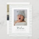 La Faire-part de naissance verte rayée à la main classique présente un moment chéri dans le style classique. Capturez l'essence pure du voyage joyeux entre parenthèses avec cette faire-part de naissance. Réalisée avec une touche de nostalgie et une touche de charme moderne, cette faire-part est la façon idéale de présenter au monde votre petit lot de joie. Nichée au coeur d'une bordure rayée verte dessinée à la main, votre précieuse photo de nouveau-né occupe le devant de la scène, entourée de la chaleur de la tradition et de la promesse de nouveaux débuts. Les teintes douces et douces des rayures vertes dégagent un sentiment de calme et de croissance, symbolisant le chapitre frais de l'histoire de votre famille. Chaque détail est conçu à la perfection - des touches artistiques et imparfaites des rayures qui rayonnent dans une ambiance authentique, au papier de haute qualité qui donne une touche d'élégance. Le design classique est un clin d'oeil à la nature intemporelle de l'amour et de la famille, assurant que cette faire-part sera appréciée non seulement par vous, mais aussi par ceux qui ont la chance de la recevoir. Que vous partagiez l'information avec des proches ou des amis ou que vous fassiez un faire-part à un cercle plus large, cette faire-part de naissance combine sans effort tradition et esthétique contemporaine. Ce n'est pas seulement un morceau de papier, c'est un morceau de coeur, un symbole de l'amour qui s'est épanoui avec l'arrivée de votre petit. Célébrez le miracle de la vie, annoncez l'arrivée de votre bébé, et diffusez le bonheur avec cette faire-part de naissance classique. Un souvenir qui saisit l'essence d'un moment, à jamais encadré dans des bandes vertes dessinées à la main - une frontière qui signifie l'amour et la joie sans limites que votre nouveau voyage réserve. Ajoutez une photo supplémentaire et des détails de l'arrivée de votre nouveau sur le dos de la carte.