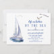 Faire-part côtière moderne avec voilier aquarelle, ligne d'ancrage diviseur & mouettes