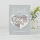 Faire-part de photo d'anniversaire de mariage de 70 ans en platine. Bel effet de liquide platine imprimé en forme de cœur pour un faire-part d'anniversaire de mariage de 70 ans. Personnalisez avec vos propres détails de mariage en gris platine et votre photo. Le 70e anniversaire est traditionnellement associé au platine et le cœur symbolise l'amour. Graphisme et design originaux de Sarah Trett.