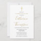Une élégante invitation de souvenir de célébration de vie personnalisée en écriture dorée. Conçue par Thisisnotme©