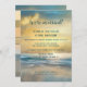 Une réception de mariage romantique uniquement, invitation après le mariage ou carte de remerciement présentant une peinture originale d'art fin d'un coucher de soleil sur la plage. Le dos montre votre photo (de mariage) préférée avec un beau cadrage rayé rêveur.