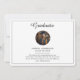 Cette élégante carte d'annonce de remise de diplôme présente un design moderne minimaliste avec une palette de couleurs noir et blanc. Le fond blanc contraste avec le texte noir gras pour une lisibilité claire. Le recto affiche du texte dans une police décorative plus grande, avec le nom du diplômé dans une police sans-serif propre.