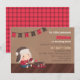 Un mignon petit bûcheron fête son premier anniversaire ! Invitez vos invités à célébrer l'anniversaire du petit avec cette charmante invitation qui représente un bébé habillé en mini-vêtements de bûcheron, avec un chapeau de trappeur, une chemise à carreaux rouges, des bretelles et un pantalon bleu en denim. Il tient fermement une hache pour couper le gâteau d'anniversaire en forme de bûche en chocolat, décoré de champignons en forme de toadstool. Fond avec motif à carreaux rouges et bruns sur une banderole et un sol en texture de bois brun. Personnalisez facilement avec les détails de votre fête d'anniversaire dans les modèles de texte.