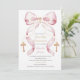 Faire-part de Première Communion au nœud et perles | Invitation élégante pour la première communion des filles | Carte de cérémonie de baptême | Invitation au rosaire et ruban. Téléchargement numérique, modèle modifiable, invitation au baptême à nœud, nœuds et perles, baptême coquette, sainte communion, baptême imprimable, 1ère sainte communion, confirmation de fille, baptême sur téléphone portable, baptême au nœud rose, première sainte communion, rosarie et ruban