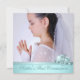 Invitation élégante de teinte bleu sarcelle pour la photo de fille à la première communion. Cette belle invitation de première communion avec photo de couleur bleu sarcelle est facilement personnalisable pour votre événement en choisissant simplement le bouton "Personnalisez-le !" pour commencer à ajouter votre photo et les détails de l'événement, le style de police, la taille et la couleur de la police, ainsi que le libellé. Veuillez noter que tous les autocollants, cartes et modèles d'invitation que vous trouverez sur Zazzle sont des graphiques imprimés sans véritables bijoux, rubans, reliefs, gaufrures ou pièces ajoutées.