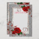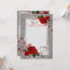Cette invitation créée sur du papier de qualité a une impression de paillettes argentées sur le devant avec une bordure imitation strass et des roses rouges avec un ornement de volutes rouges. Vous disposez de suffisamment d'espace pour ajouter votre propre texte. Le verso présente un fond de paillettes argentées avec la même impression de grandes roses rouges et un ornement et une garniture imitation strass ainsi qu'une photo exemple que vous pouvez remplacer par la vôtre. Personnalisez-la ou achetez-la telle quelle pour y ajouter une touche manuscrite.