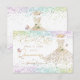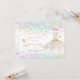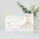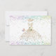 Conception de PixDezines pour un faire-part de quinceanera - avec une robe aquarelle scintillante en blanc et or. Accentué d'un fond pastel et de papillons.