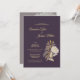 Cette invitation de réception de mariage antique aux marguerites violettes combine un design moderne boho de style vintage avec un design traditionnel de type royal. Le prune foncé et la lavande poussiéreuse, contrastant avec les fleurs dorées minimales et sauvages ainsi qu'avec la calligraphie jaune, créent une touche simple mais élégante pour votre célébration de mariage de printemps ou d'été.