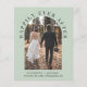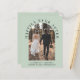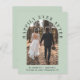 Élégante et économique invitation de mariage ou d'annonce de mariage intime en vert sauge avec votre photo dans un cadre en arc et "Happily Ever After" en typographie élégante. Sous votre photo, ajoutez vos prénoms, date de mariage et lieu. Au verso, personnalisez votre annonce et les détails de la fête ou de la réception et ajoutez vos noms dans une écriture qui ressemble à une signature.
