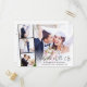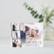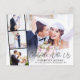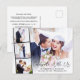 Carte postale d'annonce de mariage ou d'élopement élégant et invitation à la réception comportant votre photo de mariage superposée à une bande de trois photos carrées plus petites et « Célébrez avec nous » dans un script moderne élégant. Ajoutez vos prénoms, date et lieu de mariage. Au verso, personnalisez votre annonce de mariage et votre invitation à la réception et ajoutez vos noms dans un script ressemblant à une signature.
