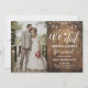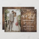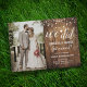 Conception de réception de mariage avec du bois rustique, des guirlandes lumineuses, de la calligraphie moderne, un petit cœur mignon et votre propre photo. Pour accéder aux outils de modification avancés, veuillez aller à « Personnaliser » puis cliquer sur le lien « cliquer pour personnaliser davantage ».