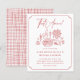 C'est l'amour ! Célébrez la future mariée avec style grâce à ce charmant design « C'est l'amour » ! Cette invitation fantaisiste présente une scène dessinée à la main avec pizza, vin, fleurs, citrons, bougies et friandises. Les initiales du couple sont écrites sur l'étiquette de la bouteille de vin. Le nom de la mariée est en majuscules grasses, avec les détails de l'événement en dessous. Un cadre de style menu méditerranéen rassemble le tout, tandis que le dos est orné d'un motif à carreaux classique. Nous avons choisi un thème rouge, mais les couleurs sont entièrement modifiables avec l'outil de conception de Zazzle. Faisant partie de la sélection de produits économiques de Zazzle, cette feuille n'est pas disponible dans les formats de carte standard. Pour obtenir ce design sur une carte standard, vous pouvez le trouver dans la collection ou utiliser la Zazzle Make Machine pour le transférer