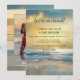 Une invitation de réception de mariage romantique uniquement, après la cérémonie de mariage, mettant en vedette une peinture originale d'art fin d'un coucher de soleil sur la plage. Le dos montre votre photo (de mariage) préférée avec un beau cadrage rayé rêveur.