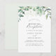 Ce faire-part de réception de mariage élégant avec feuillage est parfait pour une fête simple après une fugue amoureuse. Le design élégant moderne présente un arrangement botanique naturel d'eucalyptus, de feuilles et de plantes avec un accent de lavis d'aquarelle vert menthe subtil. Les cartes RSVP sont vendues séparément, ou vous pouvez ajouter les informations RSVP au verso de la carte.