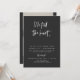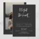 Cette invitation de réception de mariage elopement présente une police de caractères moderne et un design contemporain avec une combinaison de couleurs noir et blanc edgy. C'est parfait pour tout couple contemporain, moderne ou bohème. Modifiez *la plupart* du texte et toutes les couleurs pour répondre à vos besoins et ajoutez une photo au verso pour un touche personnelle.