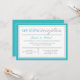 Cartes d'invitation à la réception uniquement avec un design typographique moderne turquoise et gris et une bordure turquoise et grise pour votre célébration post-mariage. Le verso est un turquoise uni.