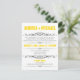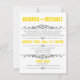 Cartes d'invitation modernes conçues pour les mariages où le couple a un mariage de destination ou une petite cérémonie de mariage privée, et n'invite les invités qu'à la célébration de la réception. La typographie sur le devant de ces invitations est conçue en polices jaunes et grises, et le verso est un jaune uni avec un texte gris facultatif pour les informations de RSVP potentielles.