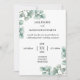 Un faire-part simple de réception de mariage avec de l'eucalyptus.