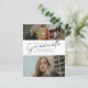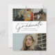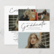 Cette invitation moderne et élégante de déclaration de remise de diplôme avec photo comprend un diplômé en écriture et un nom, une école et un collage de trois photos personnalisables sur le devant. Le verso offre des félicitations et des détails sur l'événement avec une photo supplémentaire. Un excellent moyen de mettre en valeur votre diplômé.